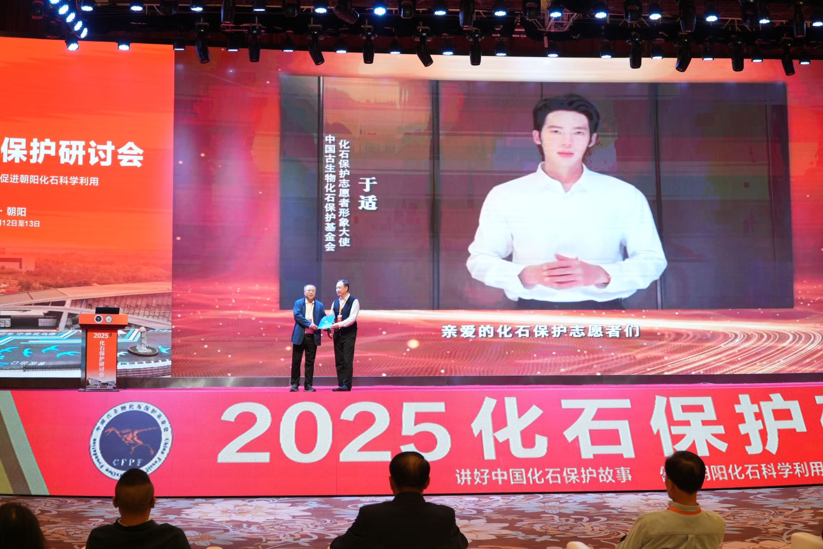 中国古生物化石保护基金会聘请朝阳籍青年演员于适担任化石保护志愿者形象大使,十余位化石保护志愿者现场宣读化石保护志愿者誓言。
