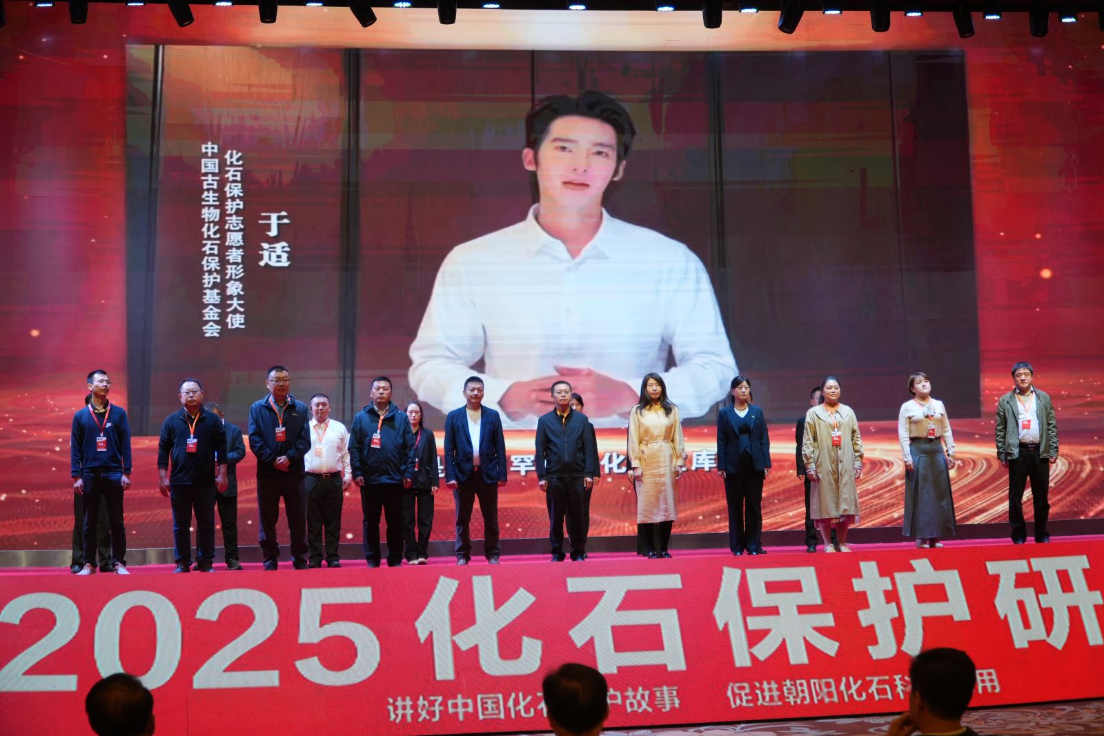 中国古生物化石保护基金会聘请朝阳籍青年演员于适担任化石保护志愿者形象大使,十余位化石保护志愿者现场宣读化石保护志愿者誓言。