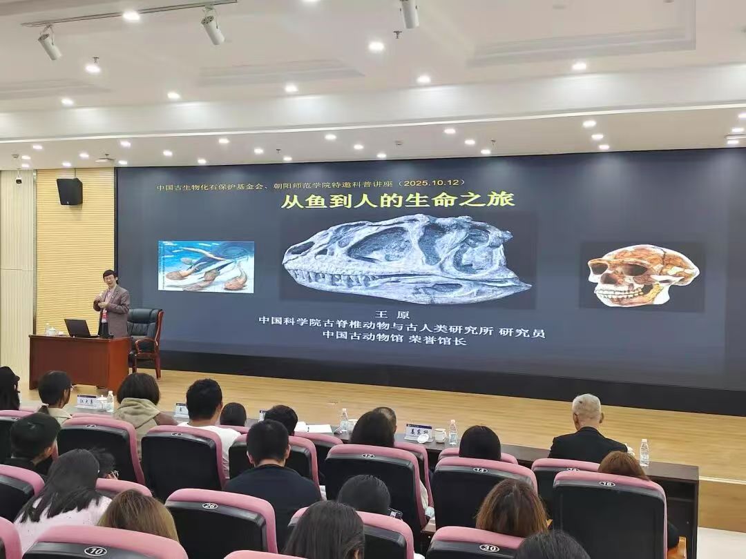 会议期间,中国科学院古脊椎动物与古人类研究所王原研究员和北京大学地球与空间科学学院江大勇教授走进朝阳师范学院,为在校师生送去科普讲座。